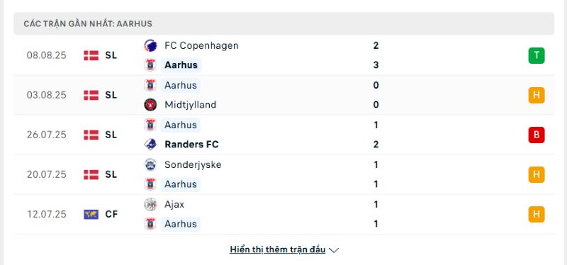 Phong độ đội khách Aarhus