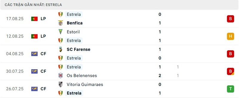 Theo tin bóng đá, Estrela Amadora đang bắt đầu mùa giải mới với áp lực nặng nề từ chuỗi thành tích đáng báo động. Phong độ của họ cực kỳ thiếu ổn định, thể hiện qua việc đã để thua tới 4 trong 6 trận gần nhất trên mọi đấu trường. Rộng hơn, thống kê cho thấy họ đã không thể giành chiến thắng trong 32 trên 40 trận gần nhất, một con số đáng lo ngại cho bất kỳ đội bóng nào đang thi đấu tại giải đấu cao nhất Bồ Đào Nha.
