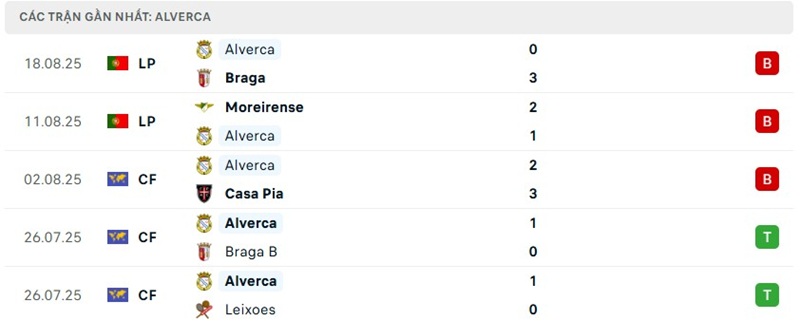 Dù khởi đầu mùa giải mới với hai thất bại liên tiếp trước Moreirense và Sporting Braga, không thể phủ nhận sức mạnh của Alverca. Trước đó, họ đã có chuỗi 4 chiến thắng liên tiếp ở giải hạng hai để giành quyền thăng hạng. Hàng công của họ hoạt động hiệu quả hơn đối thủ với trung bình 1.33 bàn/trận trong 6 trận gần nhất. Chuyến làm khách này là cơ hội để họ tìm kiếm những điểm số đầu tiên tại Liga Portugal.