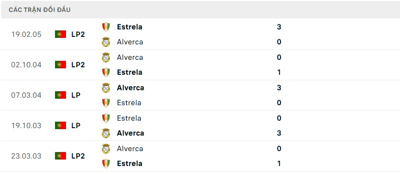 Lịch sử đối đầu đang nghiêng về phía Estrela Amadora nếu xét trên tổng thể 6 lần gặp nhau gần nhất, họ đã thắng 4 trận và chỉ để thua 2 trận. Một thống kê đáng chú ý là trong 4 lần đối đầu gần nhất trên bảng xếp hạng Liga Portugal, Estrela Amadora lại toàn thua trước FC Alverca. Điều này cho thấy Alverca không hề e ngại đối thủ khi hai đội cùng ở giải đấu cao nhất.