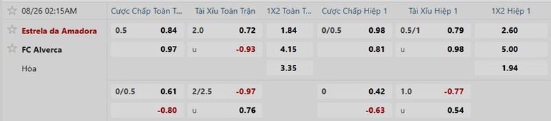 Soi kèo Estrela Amadora vs FC Alverca qua tỷ lệ