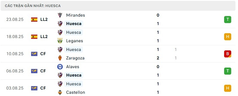 Cuộc đua giành vé thăng hạng tại Segunda Division năm nay đang diễn ra vô cùng hấp dẫn và Huesca đang cho thấy họ là một đối thủ không dễ bị bắt nạt. Phong độ thi đấu của đội chủ sân El Alcoraz là tương đối ổn định, đặc biệt là trên sân nhà. Cụ thể, trong 6 trận đấu gần nhất, họ đã giành được 3 chiến thắng, 1 trận hòa và phải nhận 2 thất bại.
