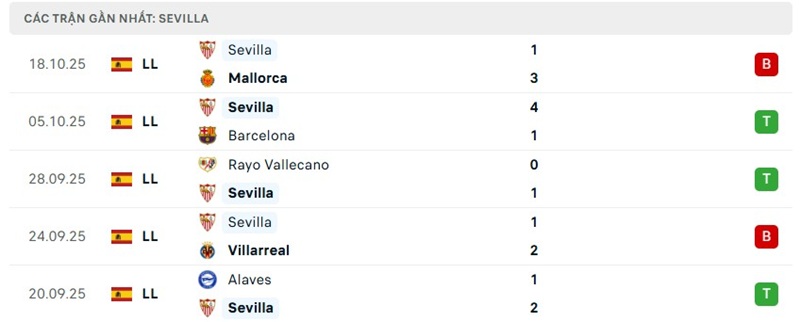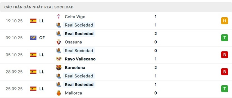 Phong độ của Real Sociedad vs Sevilla gần đây